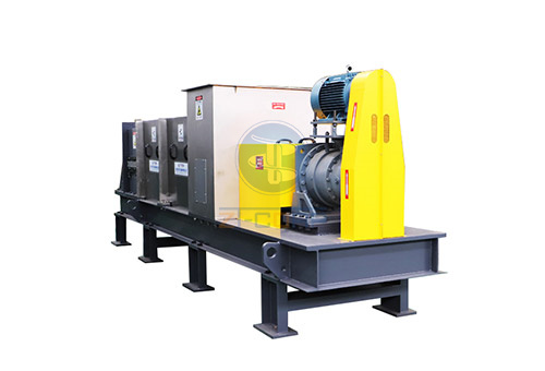 物料由進料口進入新型午夜性爱福利擠壓機,通過午夜性爱福利導輥的導程由寬變窄和導輥葉槽由深變淺,故物料在運動中受到的壓力逐漸增加,使物料液體通過不鏽鋼分離網分離,分離出的液體則從機組底部和導輥內部的排液口排出,被擠幹的物料由出料口排出。本設備主要由機座、午夜性爱福利導輥、脫水係統(分離網架、不鏽鋼分離網)、減速機、電機等組成。