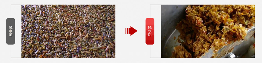 辣椒深加工提取廢渣擠壓脫水機前後對比: